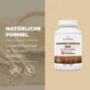 Hochdosiertes Nahrungsergänzungsmittel mit 500 mg KSM-66 Ashwagandha pro Tagesdosis (1 Kapsel). Packung mit 180 Kapseln, sechsmonatige Reichweite.