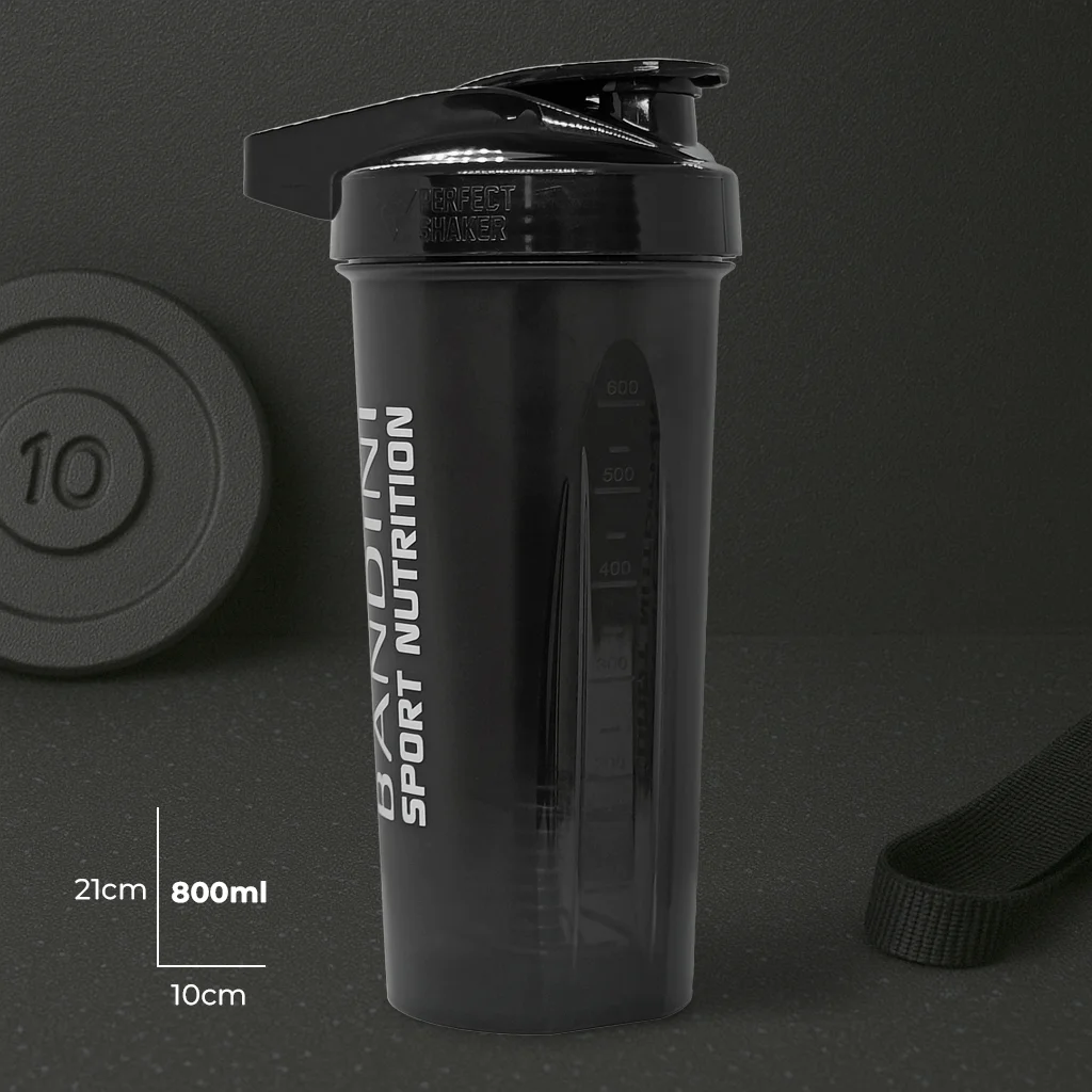 Schwarzer Shaker 800 ml zum schnellen und klumpenfreien Mischen von Supplements und Proteinen.