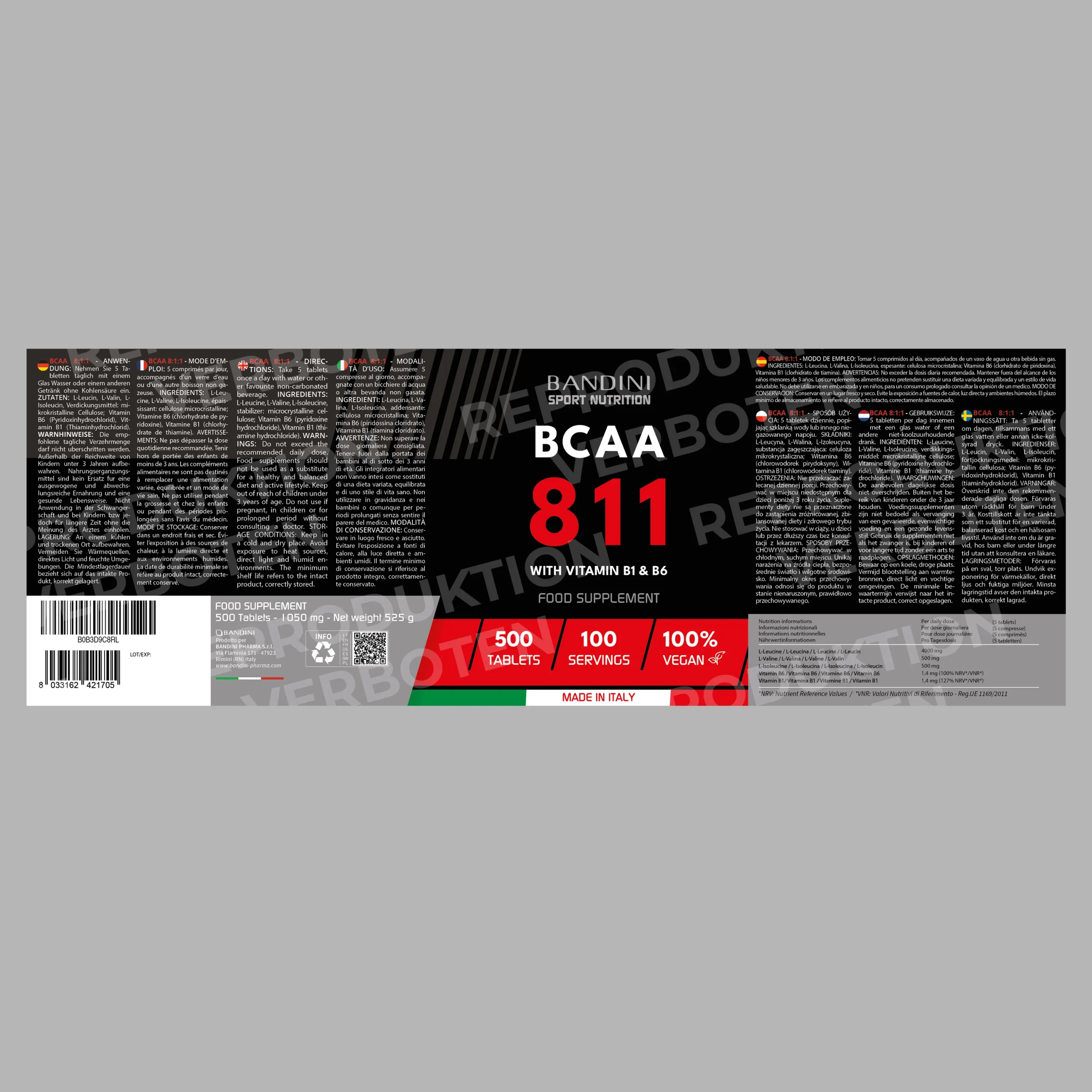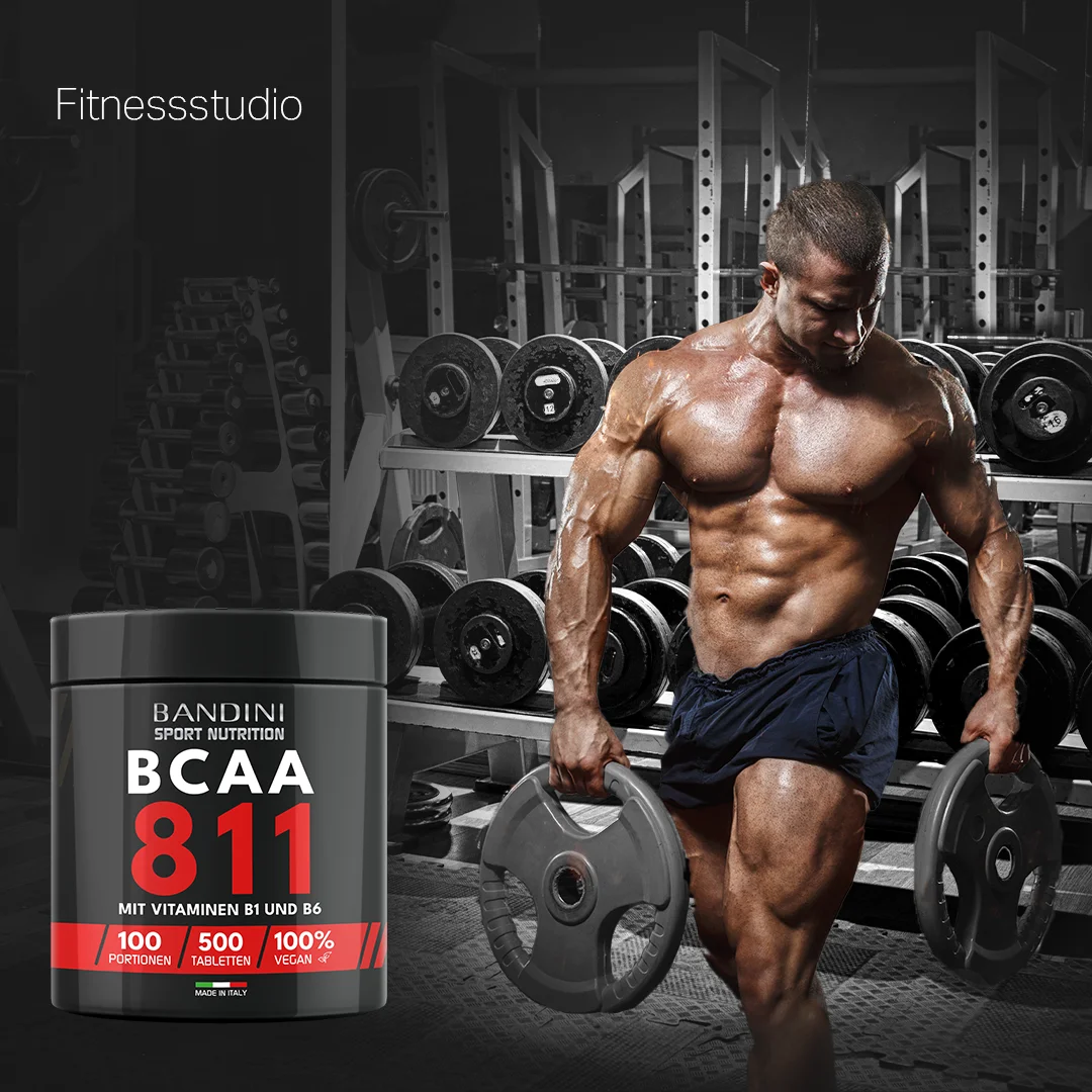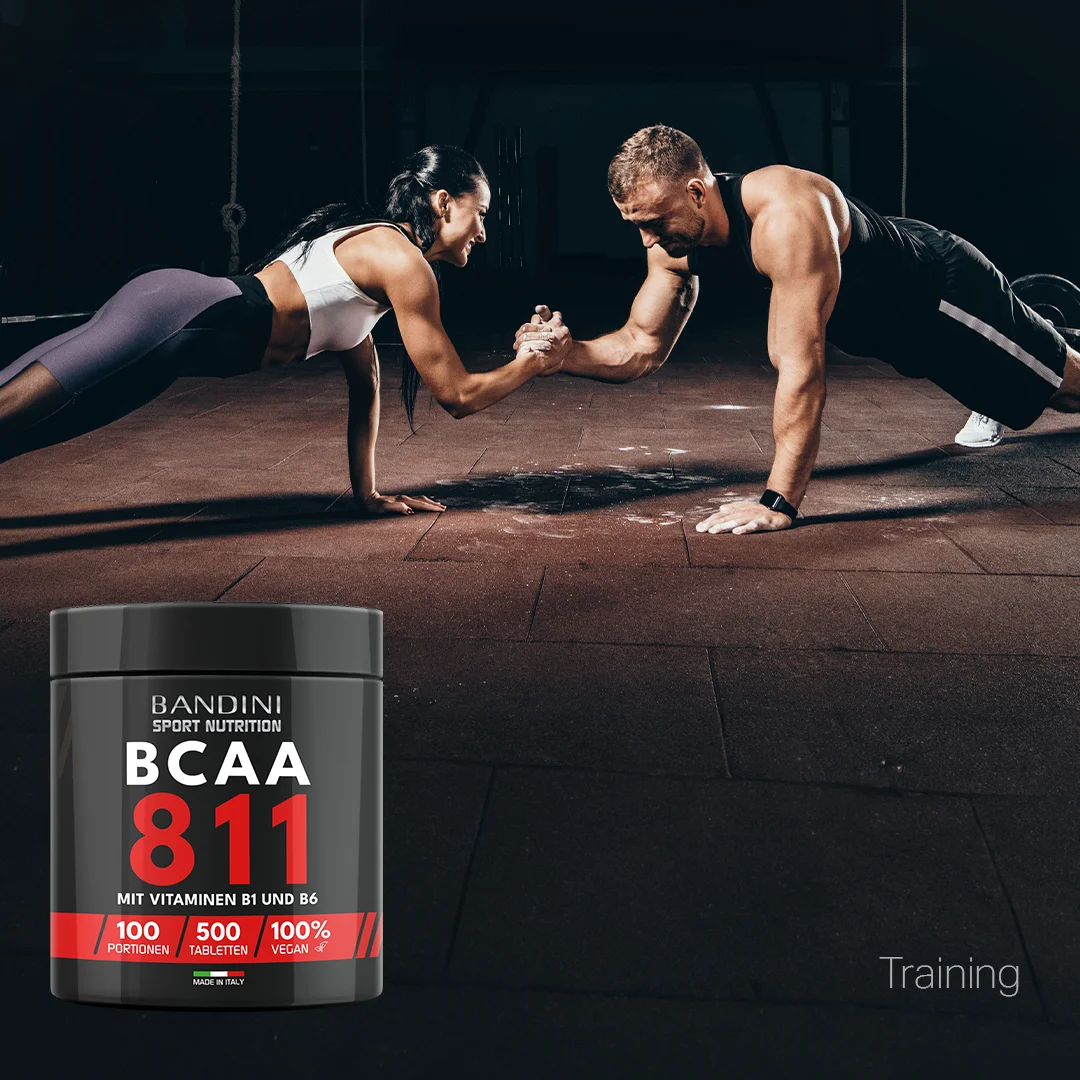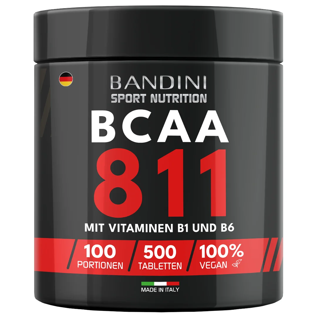 BCAA 8:1:1 500 Tabletten ist ein Nahrungsergänzungsmittel aus verzweigtkettigen Aminosäuren in einem ausgewogenen Verhältnis von 8:1:1 mit Vitamin B1 und B6. Jede Packung enthält 500 Tabletten.
