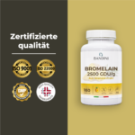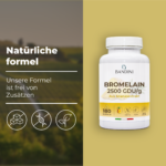 Unser Ergänzungsmittel enthält Bromelain, das aus Ananasextrakt gewonnen wird. Jede Kapsel enthält 500 mg Bromelain.