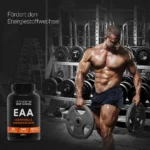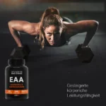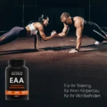 EAA ist ein Supplement aus essentiellen Aminosäuren, die der menschliche Körper nicht selbst synthetisieren kann und die über die Nahrung aufgenommen werden müssen. Die spezielle Formulierung der verschiedenen essentiellen Aminosäuren gewährleistet eine optimale Aufnahme und zelluläre Bioverfügbarkeit. Die Aminosäuren stimulieren die Proteinsynthese, mildern Muskelschäden, tragen zur Begrenzung der Erholungszeit bei und wirken dem Katabolismus nach dem Training entgegen.