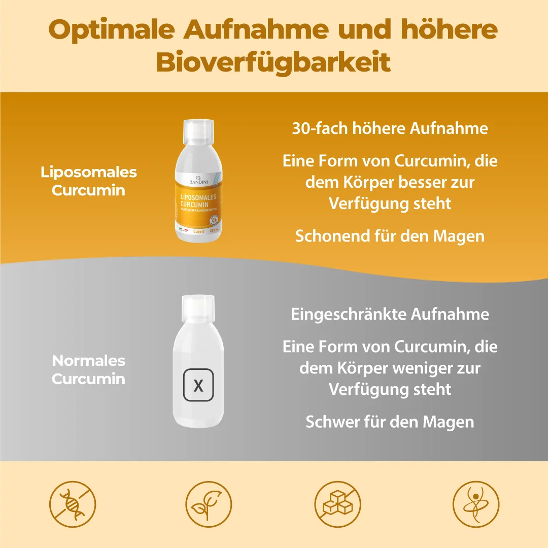 Liposomales Curcumin stellt eine neue Generation von Nahrungsergänzungsmitteln dar, die entwickelt wurden, um die Aufnahme von Curcumin, dem Hauptwirkstoff von Kurkuma, zu optimieren. Dank der liposomalen Technologie wird Curcumin in einer Phospholipidstruktur eingekapselt, die seine Absorption und Bioverfügbarkeit erleichtert. Dies bedeutet, dass Ihr Körper es effizienter nutzen und seinen Nutzen maximieren kann.