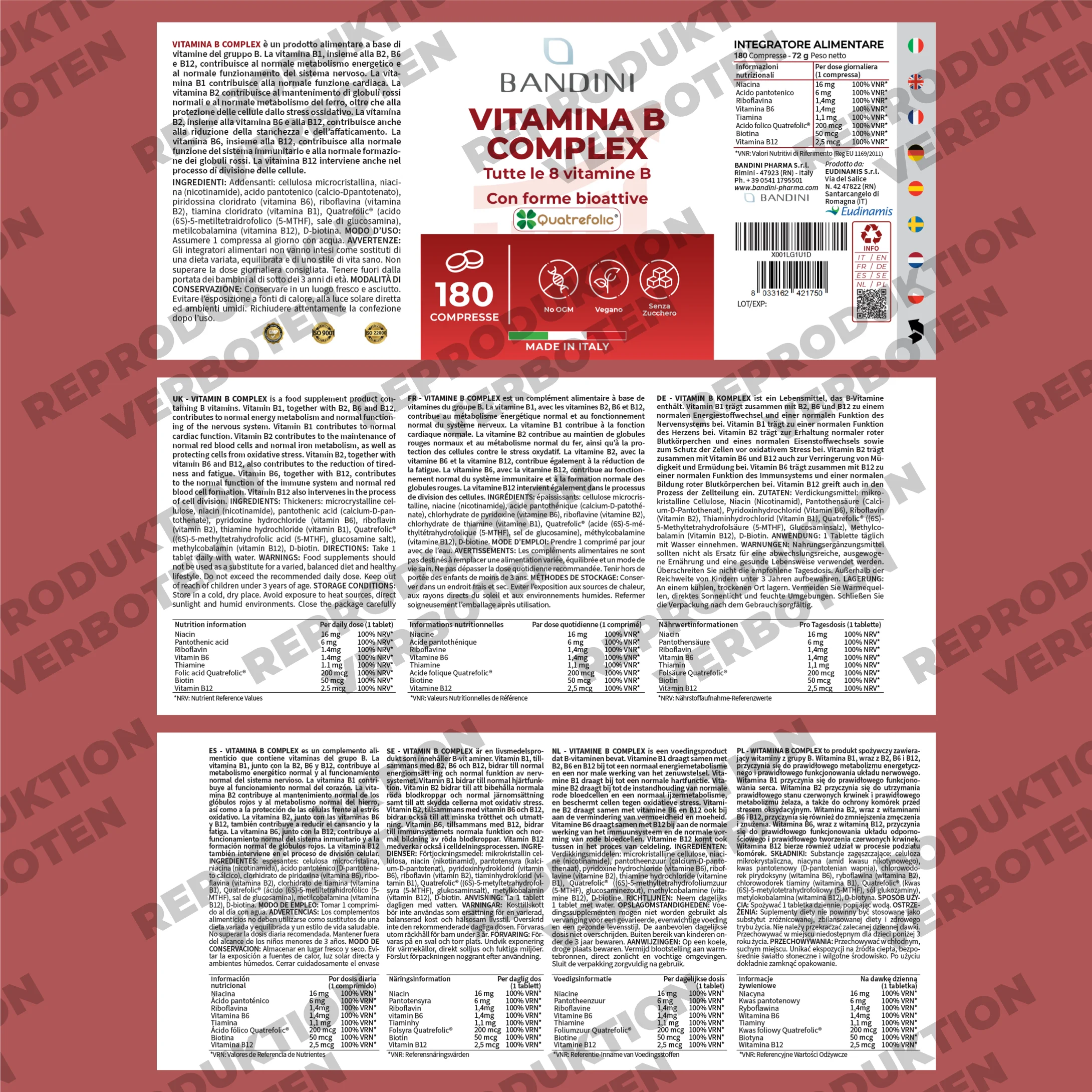 Vitamin B-Komplex 180 Tabletten ist ein Nahrungsergänzungsmittel mit B-Vitaminen.