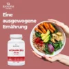 Hochdosiertes Nahrungsergänzungsmittel mit 50 µg Vitamin B12 pro Tablette. Die Tagesdosis beträgt 1 Tablette. Praktische Packung mit 120 Kautabletten für 4 Monate.