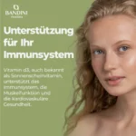 Vitamin D spielt eine Schlüsselrolle bei der Erhaltung normaler Knochen und Zähne, indem es zur normalen Aufnahme und Verwertung von Kalzium beiträgt. Außerdem unterstützt es die normale Funktion des Immunsystems und der Muskeln.