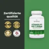 Hochdosiertes Ergänzungsmittel mit 200 mcg (200 µg) Vitamin K2 MK-7 pro Tagesdosis (1 Mikrotablette). Praktische Packung mit 400 Tabletten, für 1 Jahresvorrat.